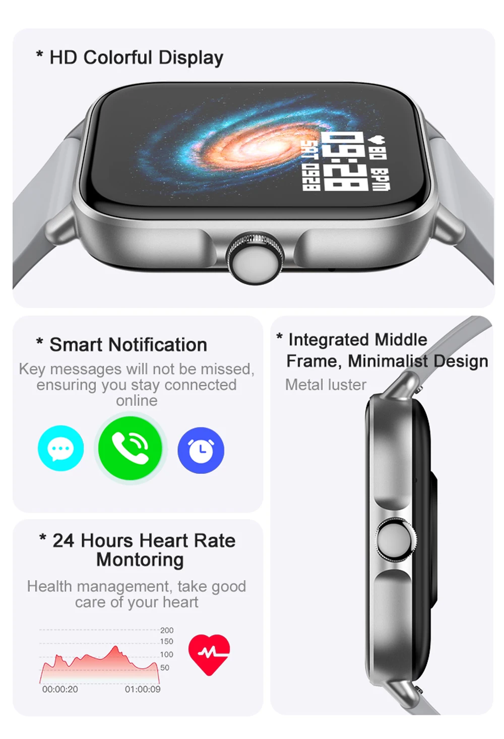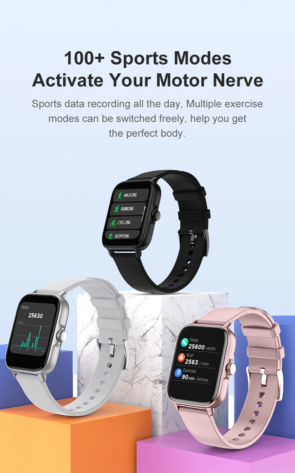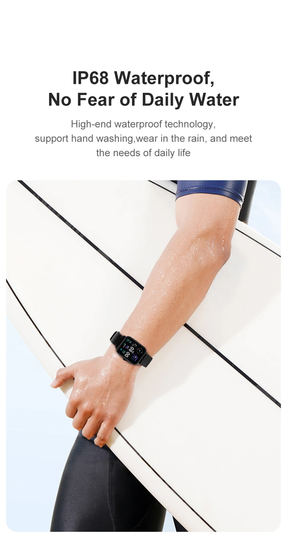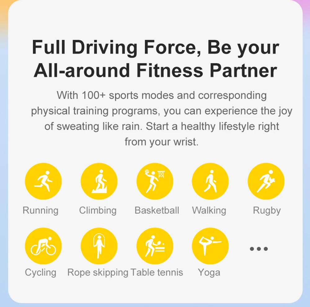 > Sports: All-Day Activity Tracking( Steps, calories, distance ), IP68 waterproof, 100+ Exercise Modes, Stopwatch, Sports Data Report.
