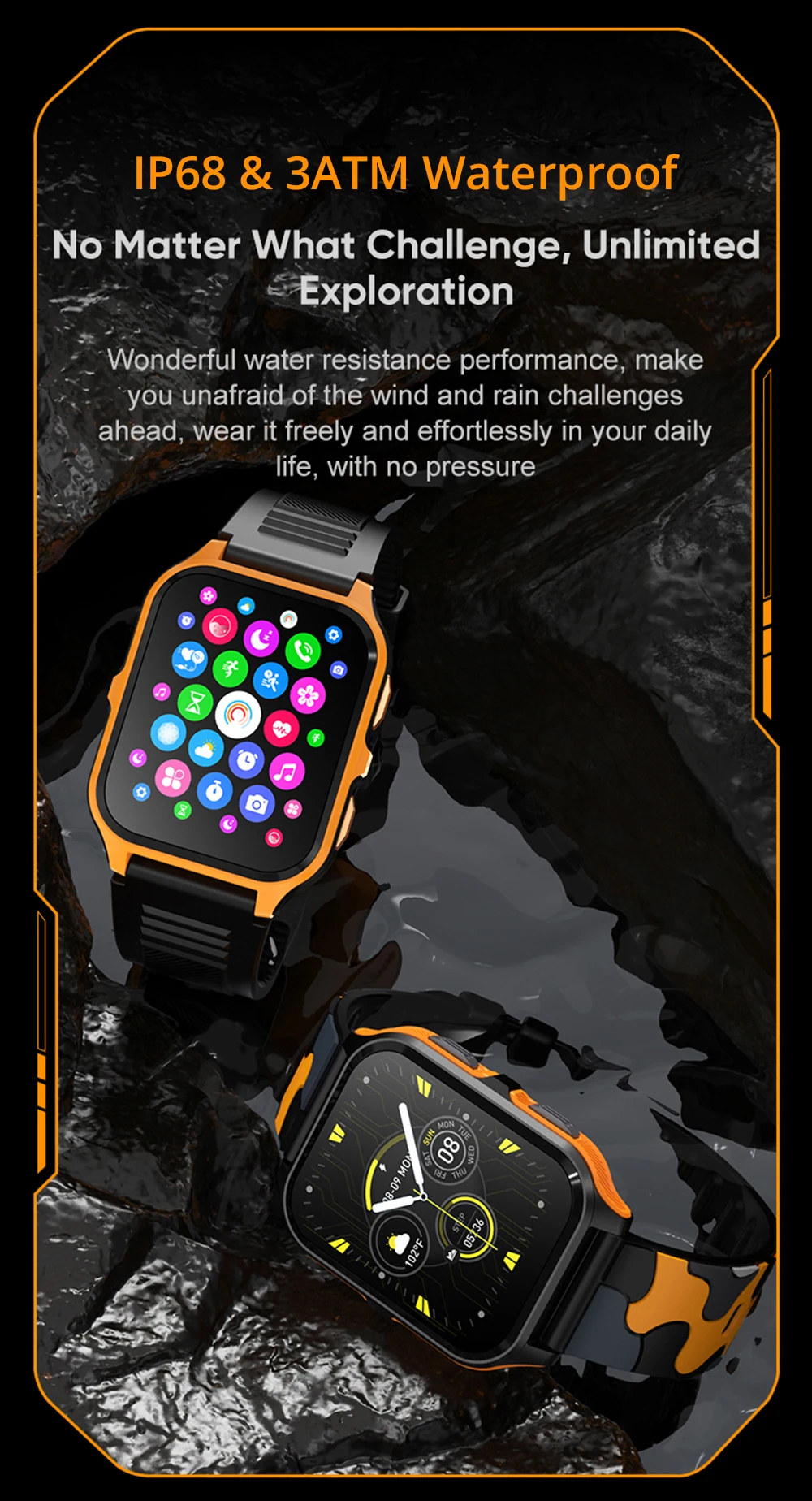 Activity Record( Steps, calories, distance), Sport Goal, 100+ Exercise Modes, Sports Data Report, IP68 & 3ATM waterproof.
