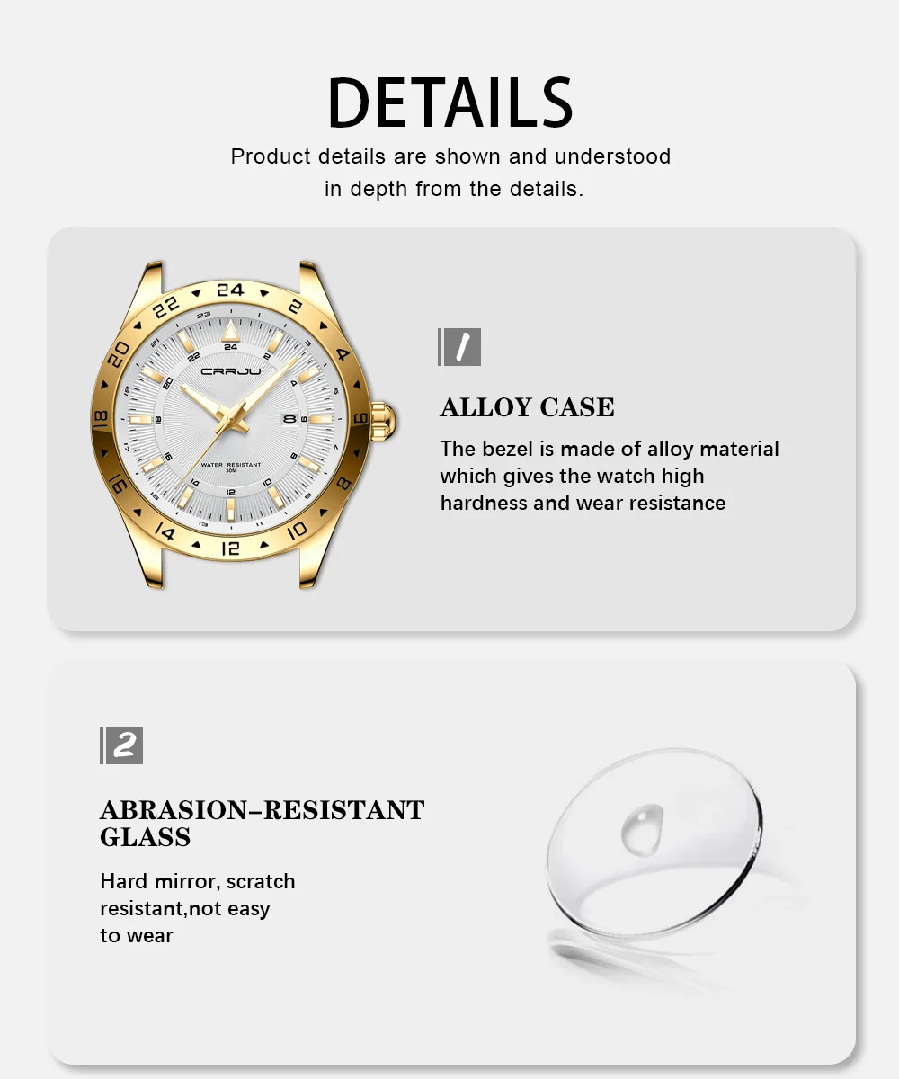⌚mens watches Perfect gift: This versatile watch blend goes with every occasion be it formal or casual. The CRRJU wrist watch is a perfect gift for you and your loved ones.