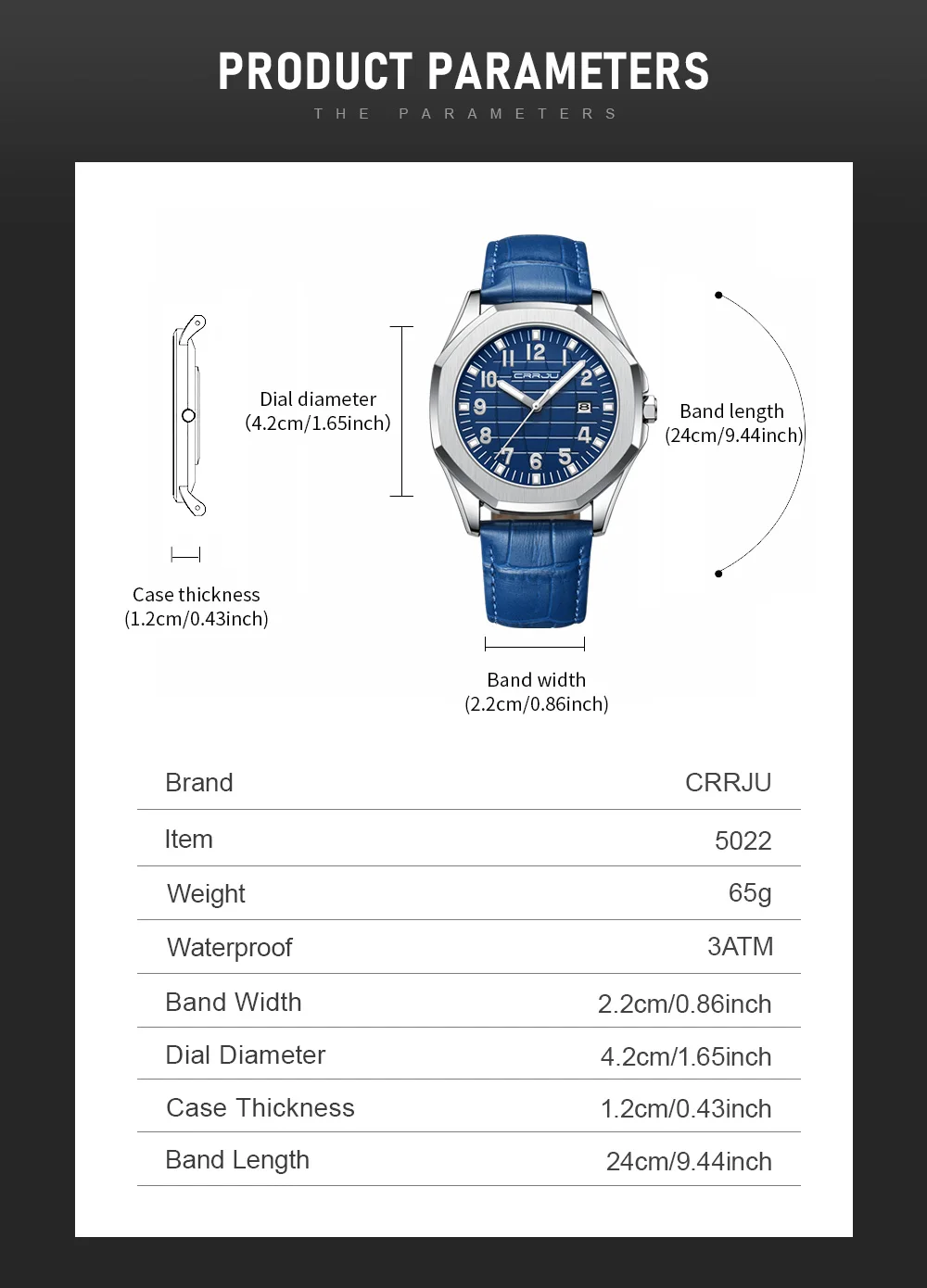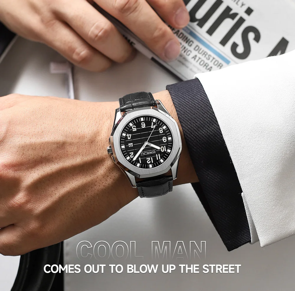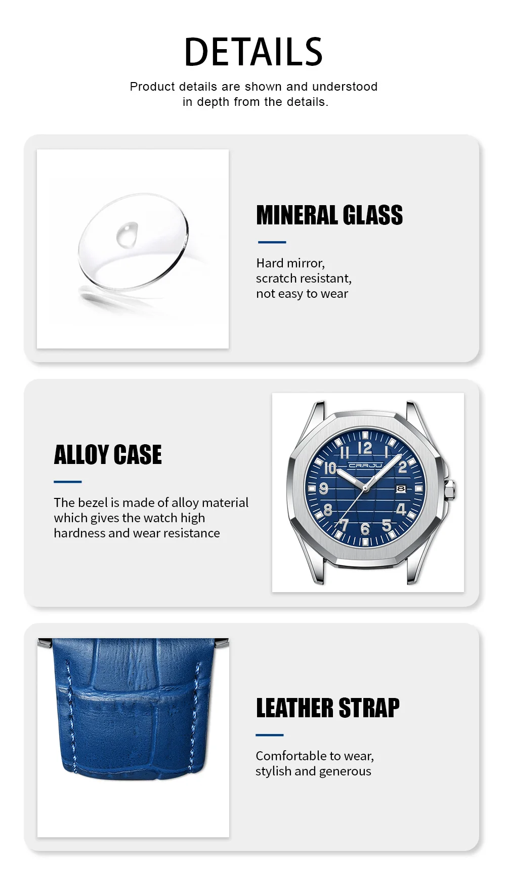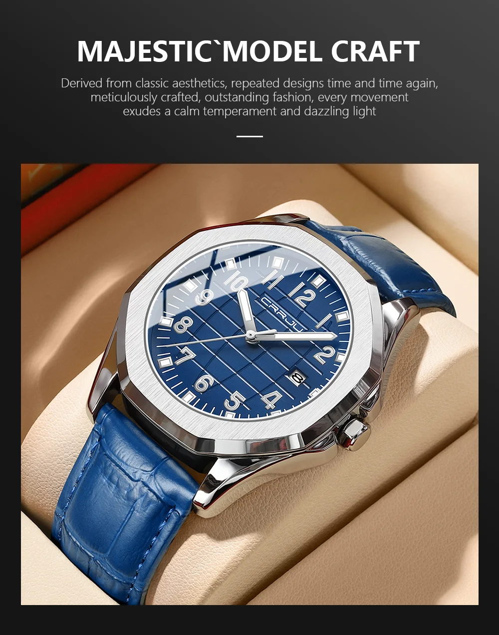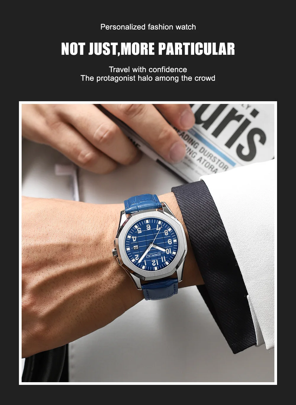 Excellent quality of this watch .It s very wonderful, with a black leather band and dimension of 43 mm .very fast shipping .
