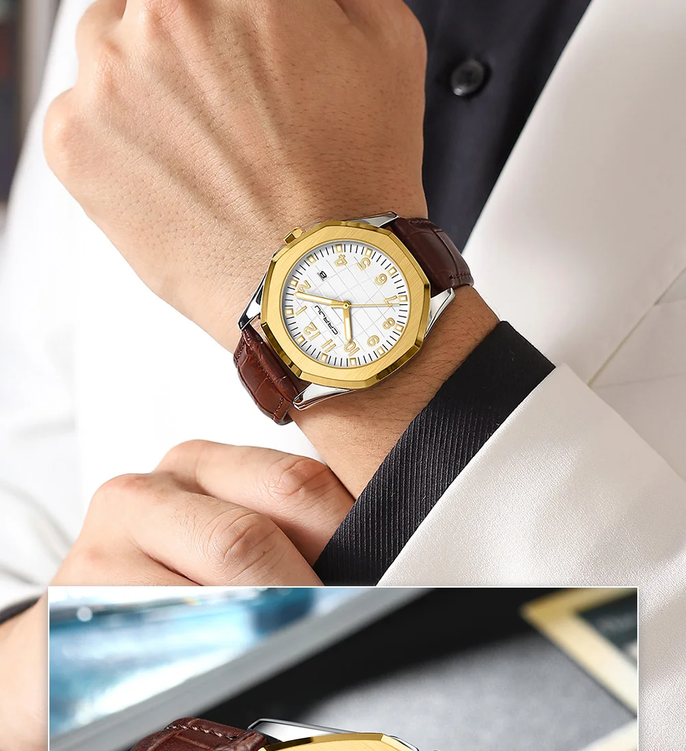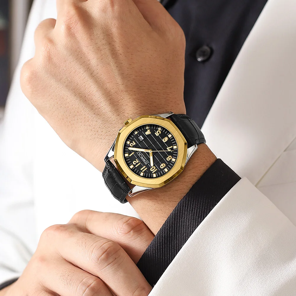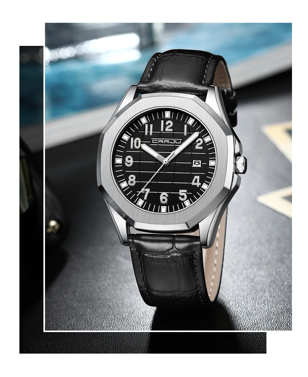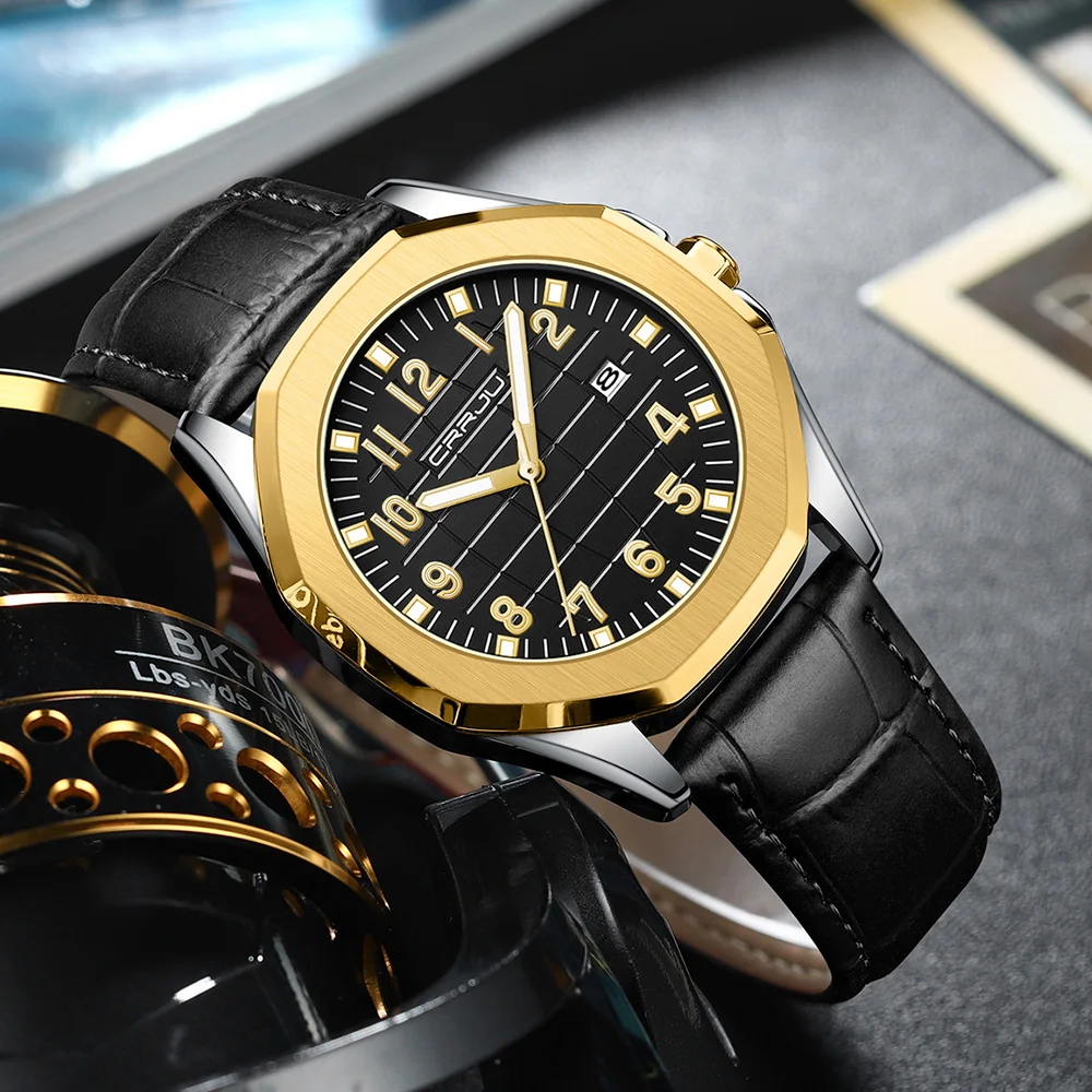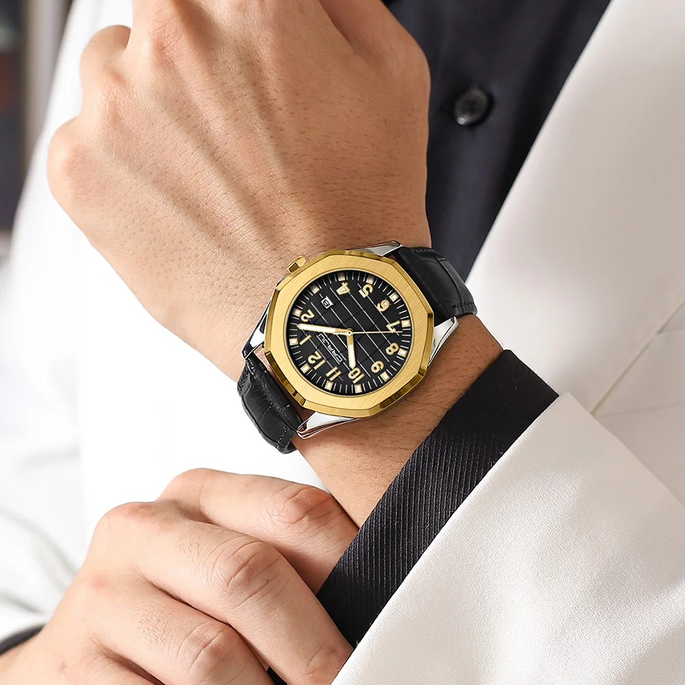 Excellent quality of this watch .It s very wonderful, with a black leather band and dimension of 43 mm .very fast shipping .