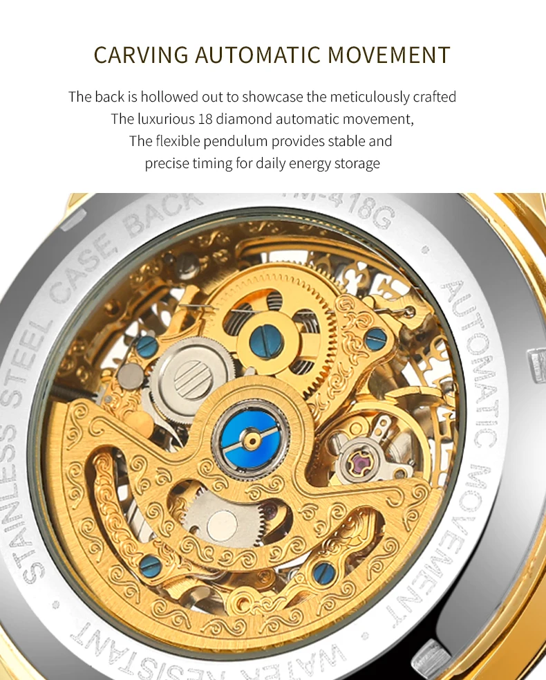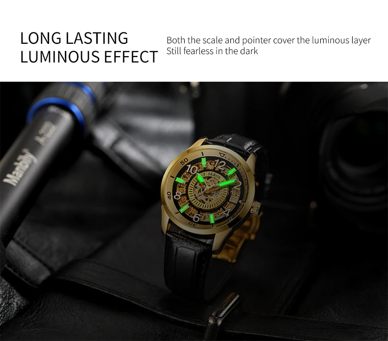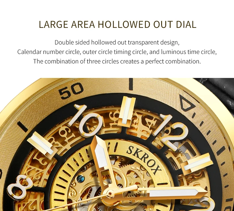 So why settle for ordinary when you can have extraordinary? Upgrade your wardrobe and make a statement with the 2024 NEW SKROX Gold Hollow Out Mechanical Automatic Watch. Get yours today and experience true luxury.